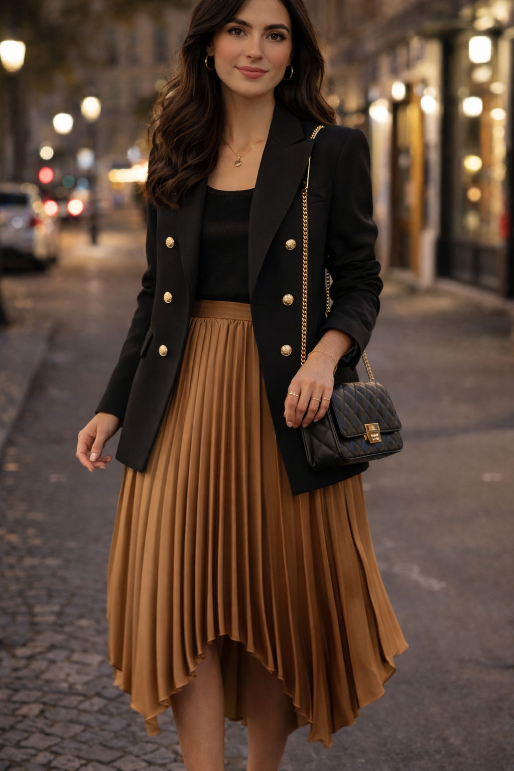 Optez pour un look élégant avec notre Jupe Plissée Asymétrique